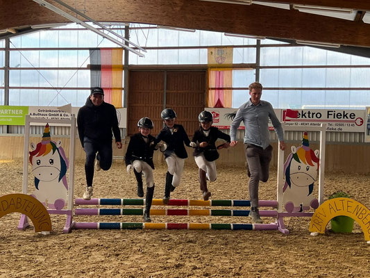 und Altenberge konnte die Altenberger Mannschaft sich beim Finale noch einmal steigern. Levi Reloe im Sattel von Glenna, Frida Draht mit Blockbuster, Lotta Schulze-Wierling mit Sissi und Anna