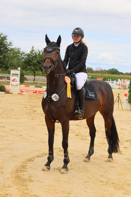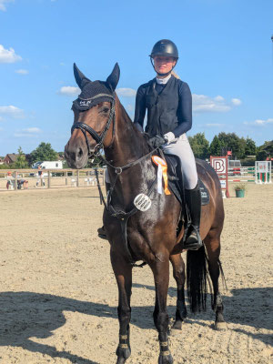 Auch Vera Schilling konnte einen Sieg für sich verbuchen. Mit Chaccourage konnte sie die Springpferdeprüfung der Klasse L gewinnen, nachdem sie sich bereits zuvor in der Springpferde A auf Rang zwei eingereiht hatte. Ponystute Tabby überzeugte bei ihrem Turnierdebüt direkt mit den Plätzen sechs und sieben in zwei Springpferdeprüfungen der Klasse A. Anneke Maier und Chaccourage bewiesen zudem, dass gute Springpferde auch gut Dressur laufen können und freuten sich über Rang fünf in der A-Dressur. Hendrik Kloppenborg hatte Curt in einem Punktespringen der Klasse L gesattelt und auch er freute sich über die rote Schleife für Rang fünf.