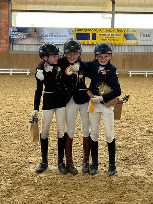 einer Dressurreiterprüfung der Klasse A auf den Plätzen zwei und drei. In der Dressurreiter A platzierte sich Lilli Michels mit San Franzisko auf Rang zwei. Janina Dües und Sternzauber freuten sich